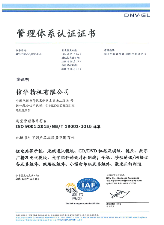 ISO9001 2015证书(2018)